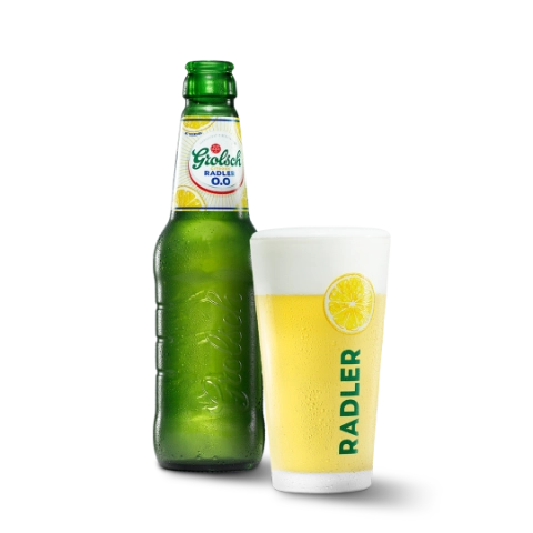Grolsch Radler Citroen 0.0% is verfrissend van smaak en licht van kleur. In deze alcoholvrije Radler komen écht bier en écht vruchtensap samen. Gebrouwen met karakter. Proost!